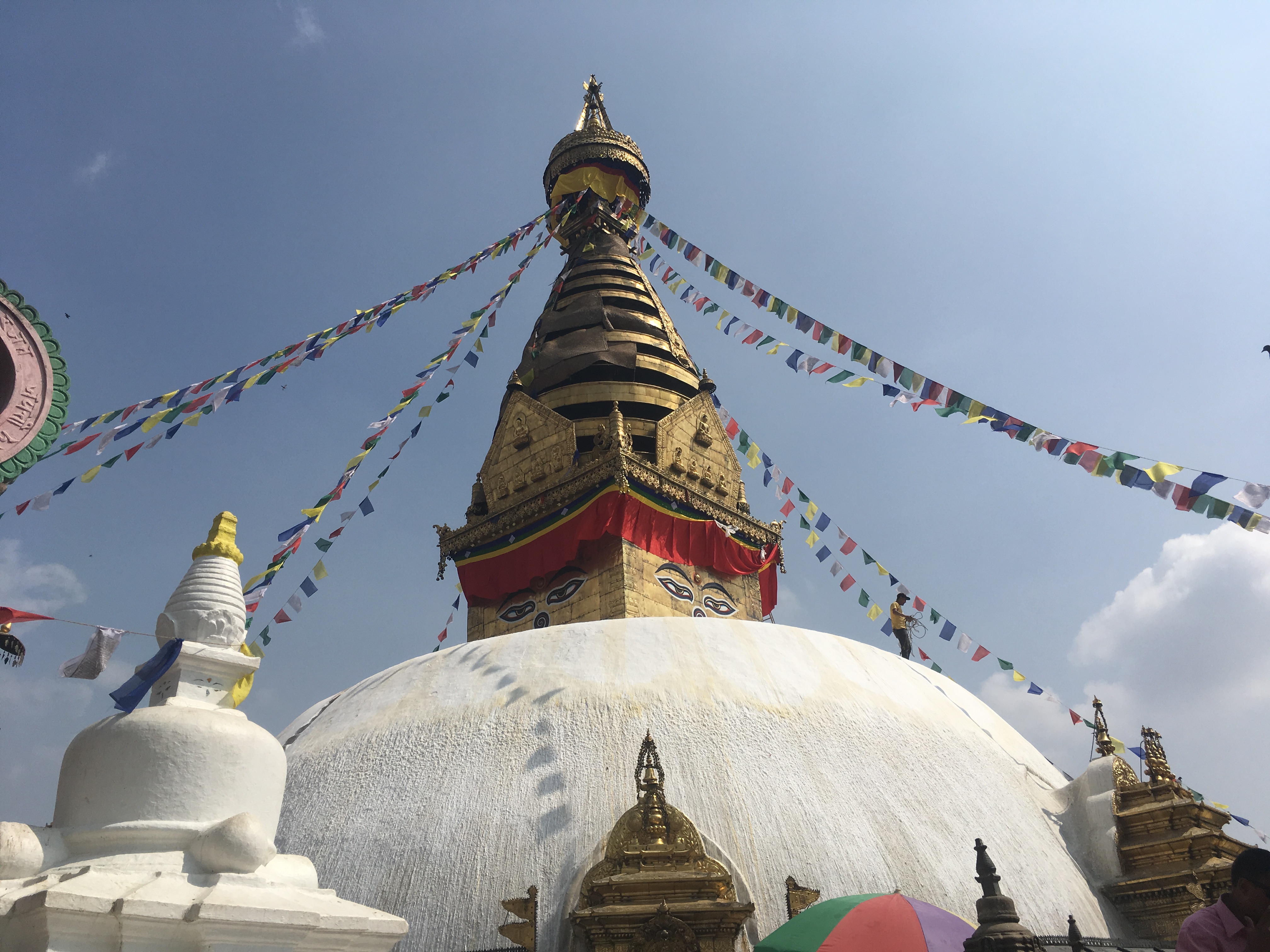 This will help mentally too if you are battling the elements and can stay warm. Getting cold may develop into a negative spiral. I had three layering system of headgear, which worked a treat. I started off with no hat, but I pulled my hood up over Kinder when the weather got gnarly. This progressed to wearing a thin beanie under the hood. When the conditions got really wild, my pièce de resistànce, was a fleecy balaclava. It cocooned my head and neck like a warm, snuggly comfort blanket, and covered the gap between my buff and hat. In the worst rain and wind, I pulled the hood tight on my waterproof jacket to protect my face from the elements, which felt reassuring warm.